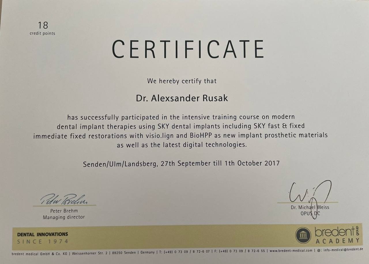 Реабилитация пациентов с использованием системы имплантатов SKY. Bredent Academy, Германия